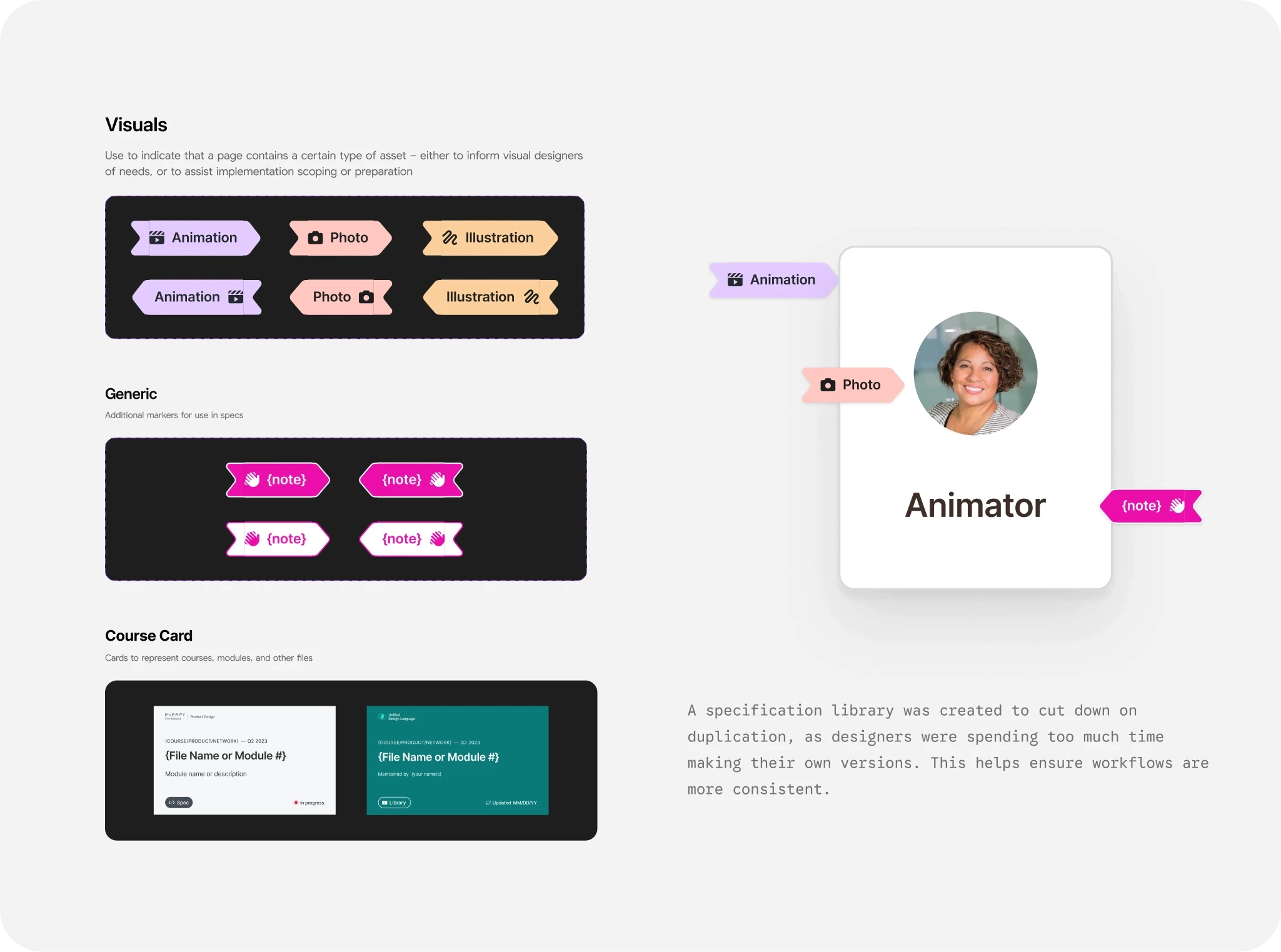 What came out of that was a unified workflow across all three product teams. I rebuilt the component library eliminating redundancies, then defined a simple linear process, lo-fi with Learning Experience and developers, visual production with the visual team, hi-fi final handoff. Three stages, clear ownership, no ambiguity.
