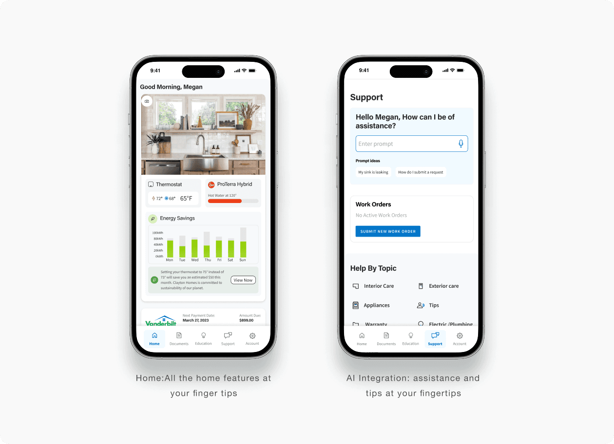 Once we established a solid prototype, I created a high-fidelity video featuring a mobile device that narrated the various pathways for Clayton homeowners. This motion piece simplified the complex workflows into a compelling story that anyone could understand. This vision video became the ultimate tool for securing stakeholder buy-in and moving the project onto a funded, high-priority roadmap.